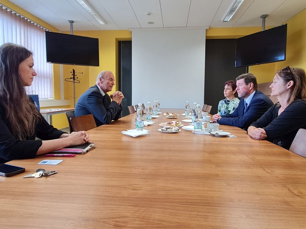 Prof. Rosina představil FBMI, možnosti studia i výzkumné aktivity. V diskuzi se řešily formy spolupráce, od témat ročníkových prací, možností vedení prací, exkurzí či realizace experimentů v laboratořích fakulty.